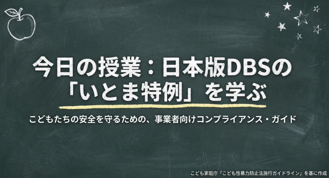 これらの措置は、単に「気をつける」だけではなく、「どのような措置を講じているか」を記録に残しておくことが、万が一の際の法的保護や信頼性の担保につながります。いとま特例で犯罪事実確認が終わっていない職員を通常通りに配置してこどもに被害が出てはいけませんからね。